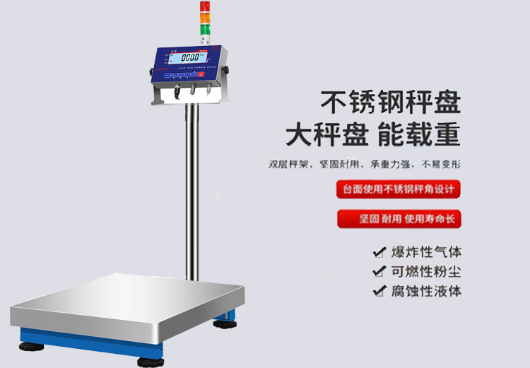 在工業(yè)生產(chǎn)和商業(yè)領域,高精度的秤重是至關重要的環(huán)節(jié)。為了確保稱重操作的準確性和安全性, 三色燈報警防爆電子臺秤應運而生。 這種臺秤結(jié)合了先進的電子稱重技術(shù)和安全防爆設計,為用戶提供了更加智能化的稱重體驗。