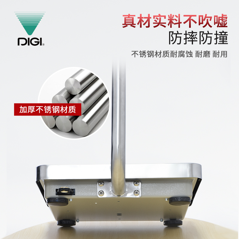 它具LED高清大屏顯示器,紅字高清顯示,白天黑夜也能讀數(shù)清晰;應變式傳感器,快速稱重讀數(shù);省電,耐用待機時間長,直交流兩用,內(nèi)置蓄電池,避免斷電麻煩;加厚不銹鋼材質(zhì),防撞防摔,耐磨耐用!